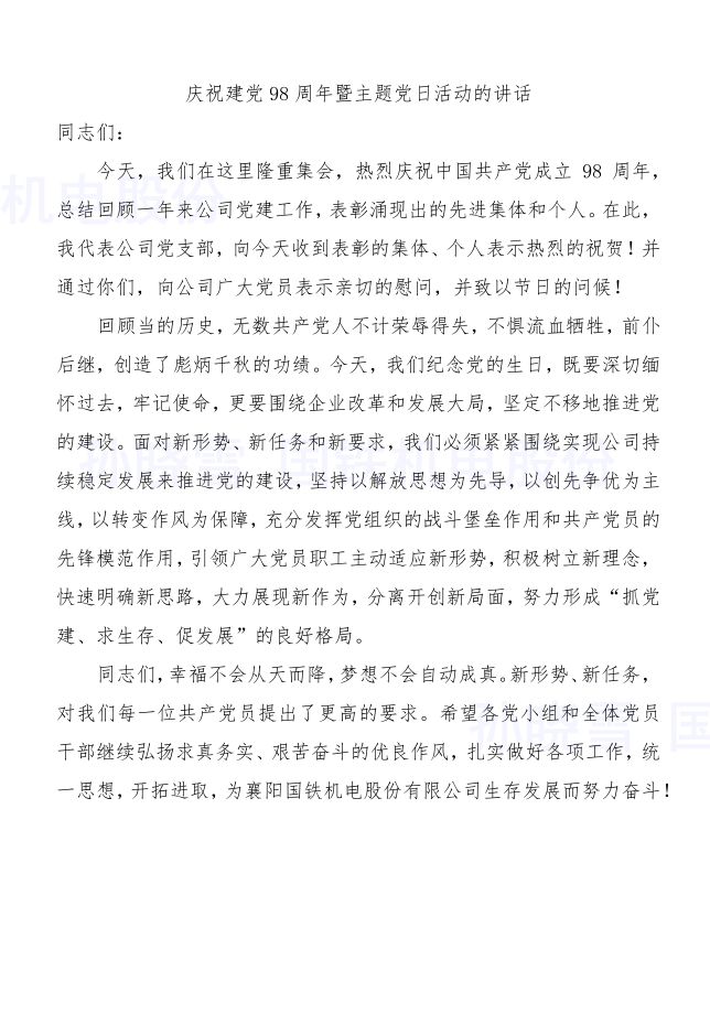 四、附黨支部書(shū)記致辭: